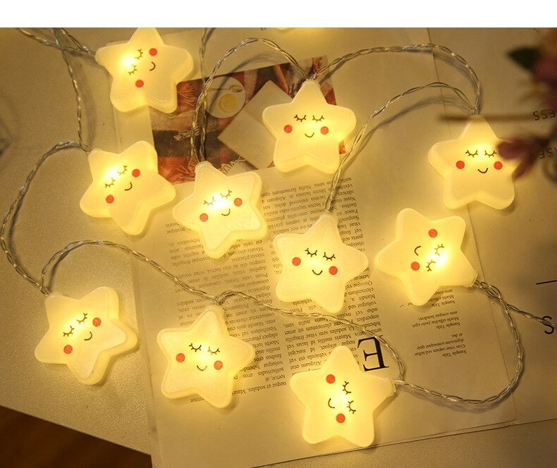 Tenk deg den myke gløden fra disse bedårende stjernene som sprer et rolig og beroligende lys i mørket. De hvite stjernene, med sine lukkede øyne og rødmende kinn, utstråler en følelse av fred og lykke. Denne hvit stjernelyslenke for dekorasjon er ikke bare en lyskilde; det er en stemningsskaper som inviterer til avslapning og hygge. Perfekt for å skape en lun atmosfære på kjølige kvelder, eller som et sjarmerende nattlys for de minste. De kan enkelt henges opp, vikles rundt møbler, eller legges i en glassbolle for en unik midtpunktsdekorasjon.