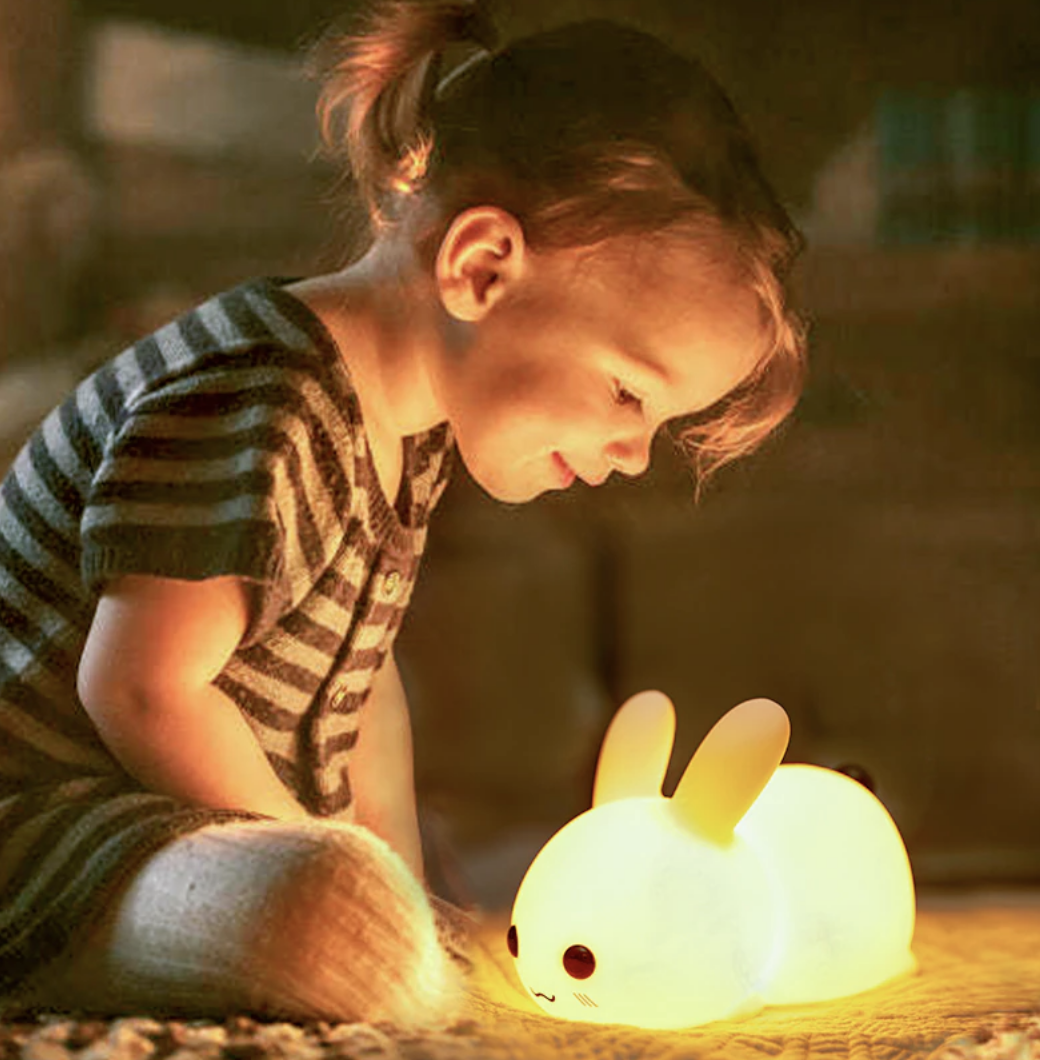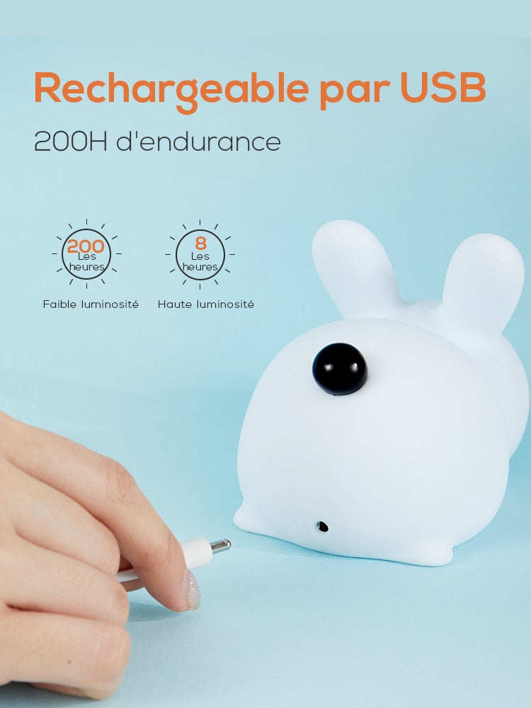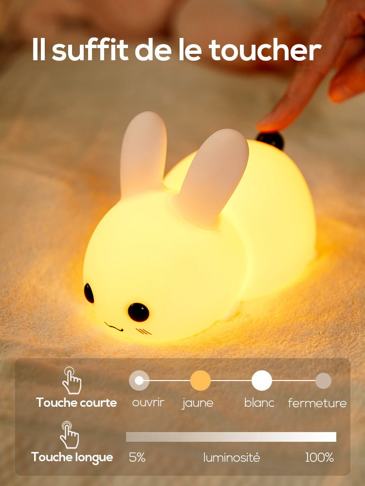 Enkel Justerbar Silikon Nattlampe Kanin Med Touch – Perfekt for Små Hender