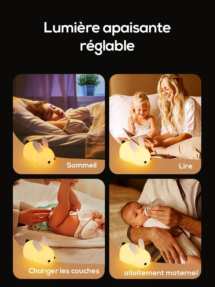 Koselig Justerbar Silikon Nattlampe Kanin Med Touch for Barn og Voksne