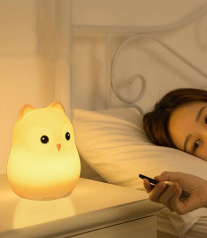 Enkel kontroll med "Myk ugle nattlampe med fjernkontroll"