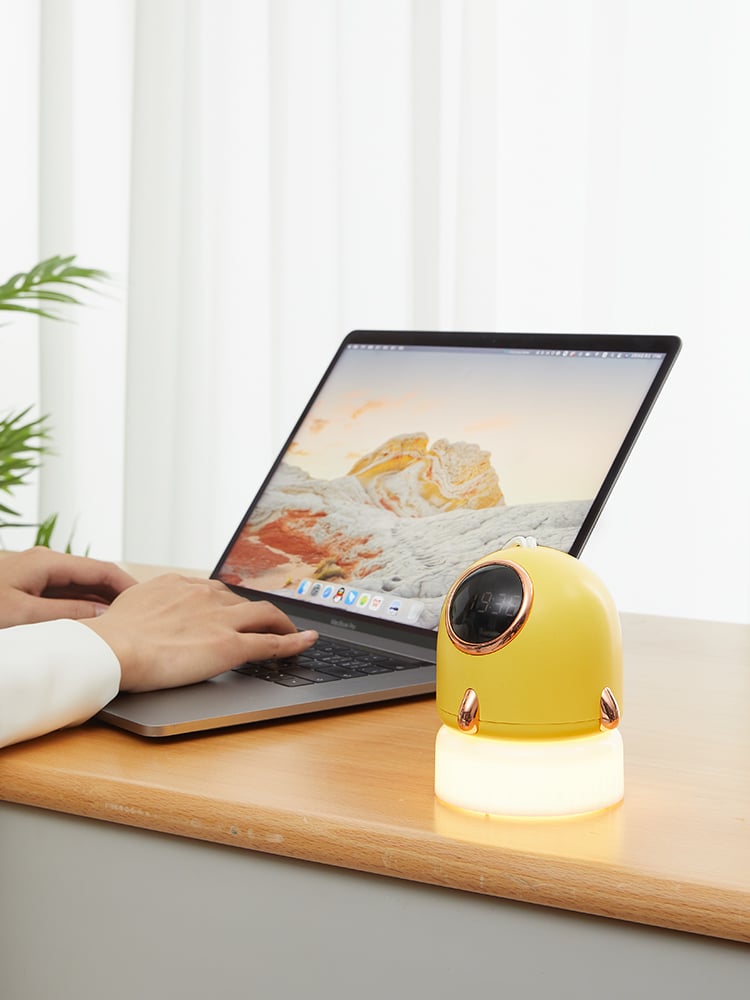 - **Integrert Klokke og Vekkerklokke:** En tydelig digital skjerm viser klokkeslettet, og den kan også fungere som en mild vekkerklokke.