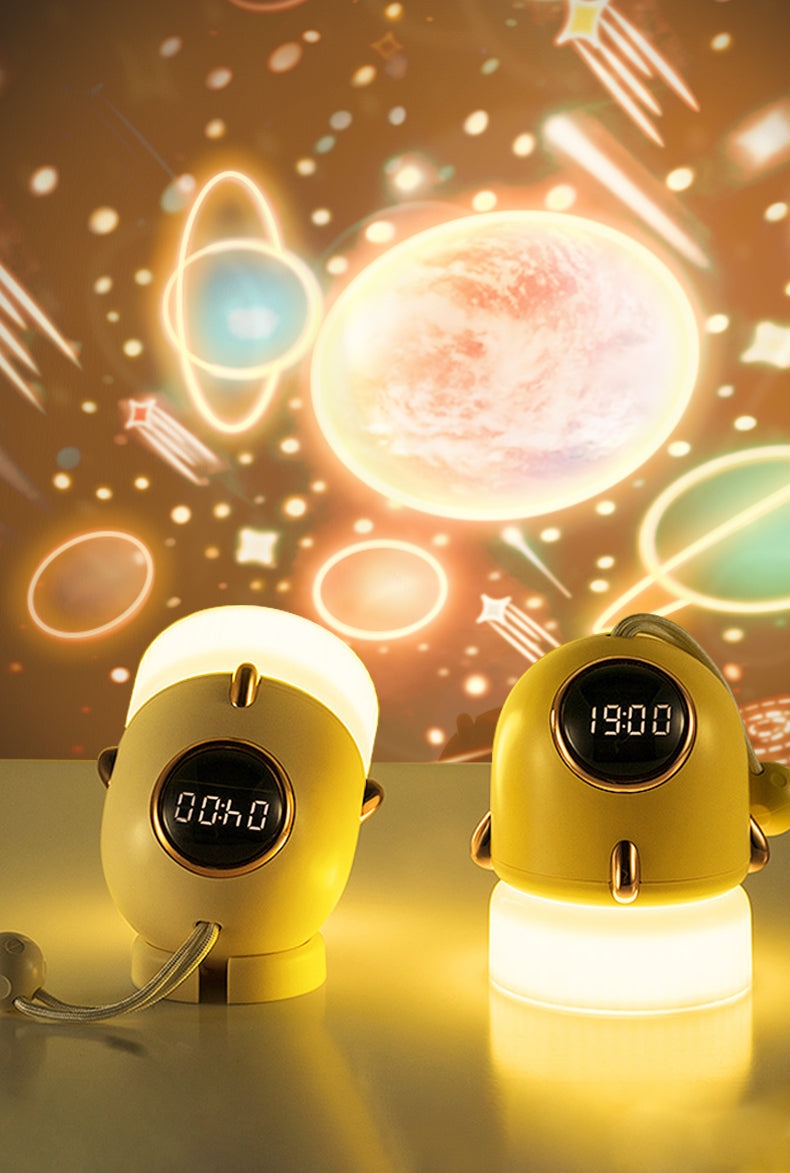 Denne nattlampen er ikke bare pen å se på, den er også full av funksjoner som forenkler hverdagen og forbedrer barnets søvn. Med et mykt lys som skaper trygghet i mørket, slipper barnet å føle seg alene. Projektorfunksjonen stimulerer nysgjerrigheten for universet og kan være en flott start på gode samtaler om verdensrommet. I tillegg til å være en beroligende lyskilde, fungerer den også som en stilfull vekkerklokke, slik at barnet lærer å forstå tid på en morsom måte. Den kompakte og barnevennlige designen gjør den enkel å plassere hvor som helst på barnerommet, og den er robust nok til å tåle barnas lek.