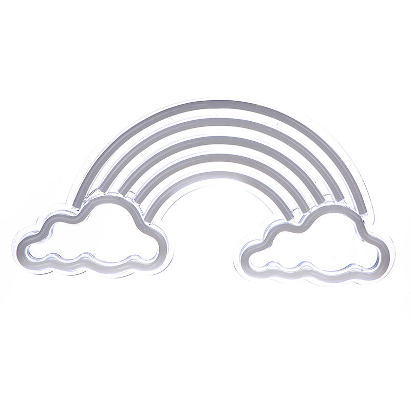 Leter du etter den perfekte måten å gi rommet ditt et friskt og fargerikt løft? Vårt Regnbue neonskilt LED er akkurat det du trenger! Dette sjarmerende skiltet, som forestiller en strålende regnbue med søte skyer på hver side, vil umiddelbart skape en glad og livlig atmosfære. Enten det er til barnerommet, stuen, en spillrom eller til og med en fest, er dette LED-neonskiltet en fantastisk måte å uttrykke din personlighet og lyse opp hverdagen. Det er enkelt å montere og gir et mykt, behagelig lys som ikke bare ser flott ut, men også er energieffektivt. Forestill deg gleden det vil bringe!