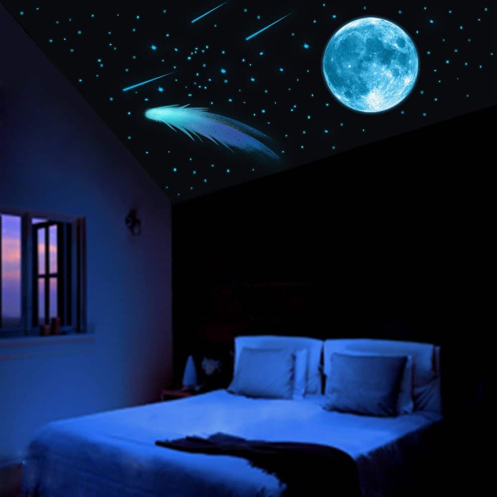 Gi barnerommet et himmelsk preg med Selvlysende blå måne og stjerner veggdekor!