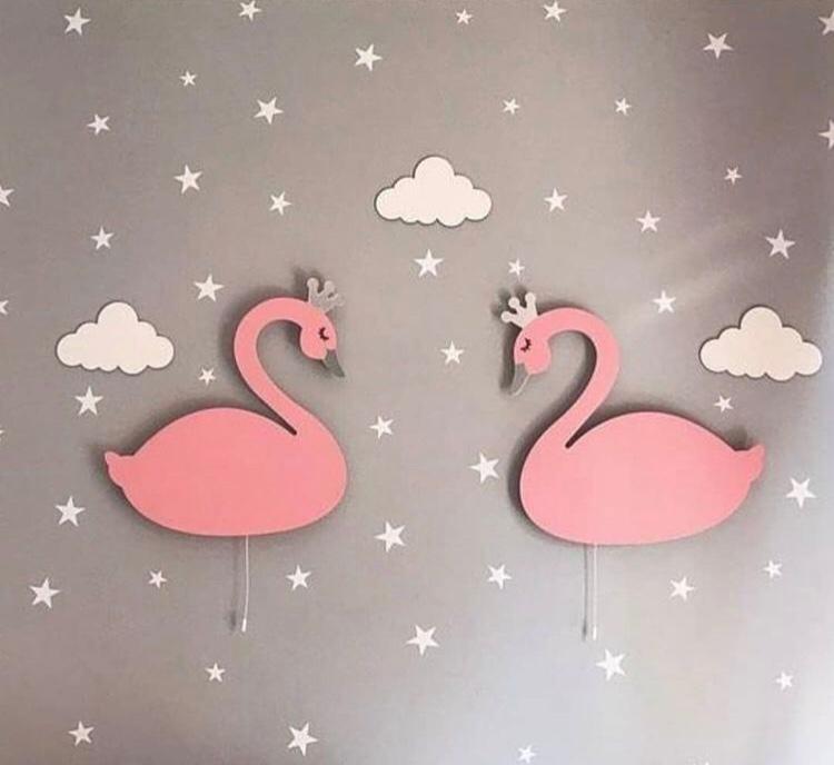 Leter du etter den perfekte nattlampen som ikke bare lyser opp rommet, men også sprer glede og eventyr? Våre svanelamper i tre til barnerommet er akkurat det du trenger! Disse sjarmerende lampene, formet som majestetiske svaner med små gullkroner og nebb, kommer i en myk rosa og en klassisk hvit farge. De er ideelle for å skape en beroligende og magisk atmosfære på barnerommet, og vil garantert bli en favoritt både dag og natt.